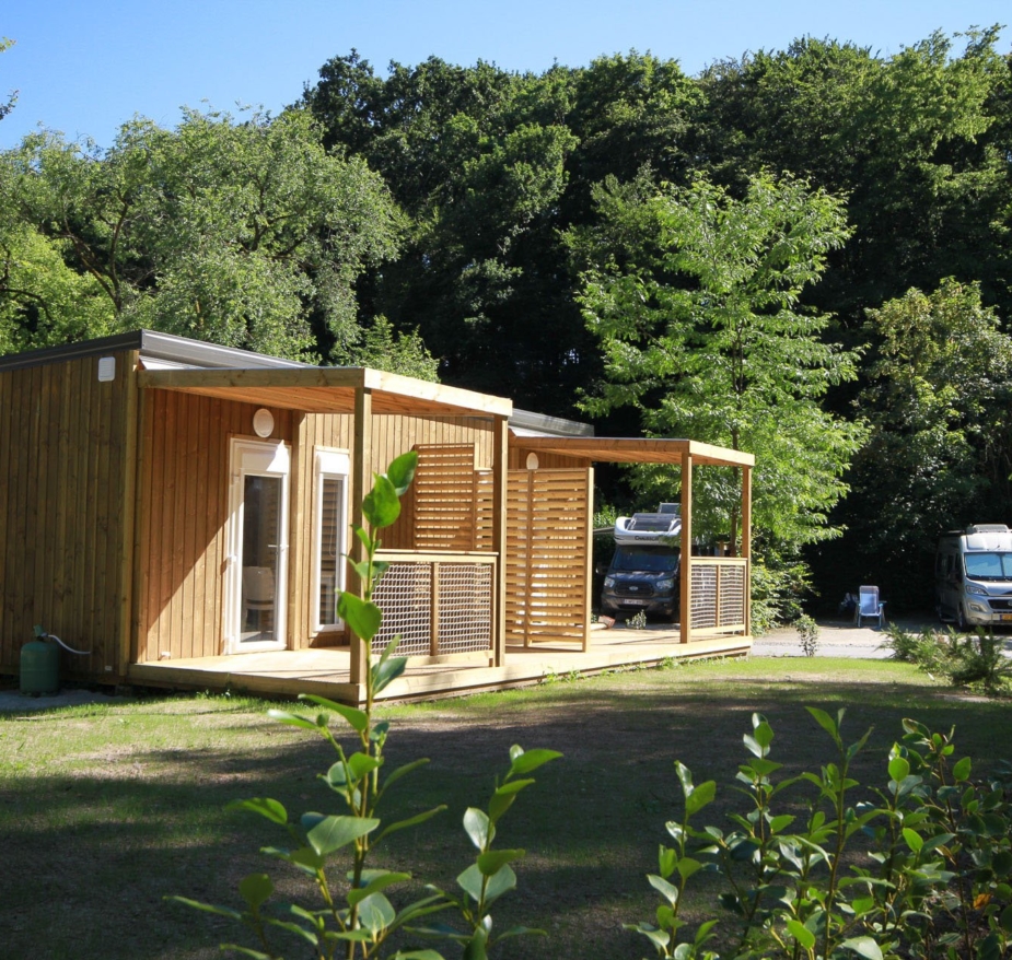 Within this adjoining chalet, enjoy an optimised space which is both functional and fully equipped, combined with 5-star services. These comprise amongst others, TV and Wi-Fi. Also make the most of the shaded terrace and its exceptional view across the campsite.