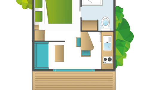 En el interior de este sencillo y confortable chalet adosado, disfrutará de un espacio rediseñado, optimizado y totalmente equipado. Encontrará un alojamiento cálido y funcional, combinado con los servicios de un establecimiento de 5 estrellas: TV, WiFi, etc. También disfrutará de la terraza sombreada y de sus vistas a la vegetación.